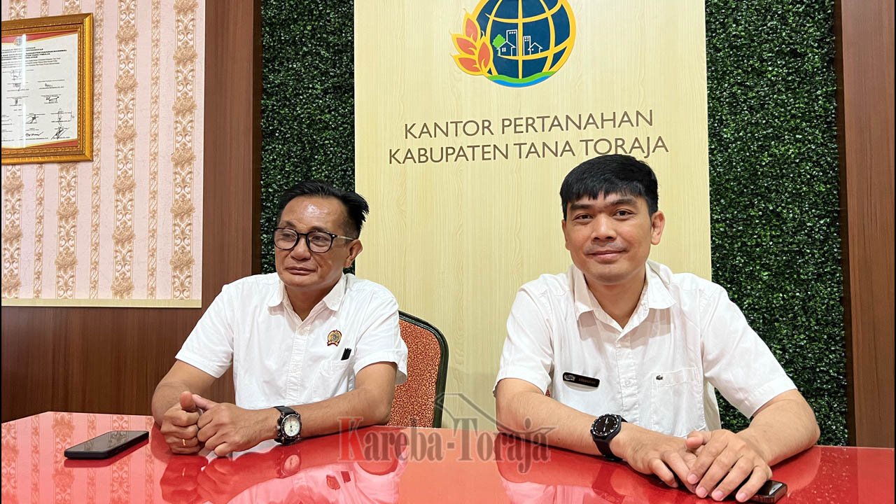 Humas dan Kepala Subbagian Tata Usaha Kantor Pertanahan Tana Toraja, Armansyah dan staf. (AP/Kareba Toraja).
